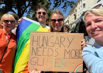 The Hungarian government’s attempt to ban the pride parade, under the pretext of so-called “child protection” laws, marks a serious erosion of democratic freedoms and fundamental rights. Adopted by the Parliament in March 2025, the law prohibits public gatherings that ‘promote or display homosexuality or gender-change’, thereby effectively banning LGBTQ+ Pride events. A constitutional amendment followed in April, backing this stance with legal force and allowing facial-recognition tech to identify participants. Under the law, attendees could face fines up to €500 and organizers risk up to one year in prison. In the face of these threats, the pride parade became not just a celebration of LGBTQI+ identity, but a protest and broader rallying cry for European values: democracy, inclusion, and the rule of law.