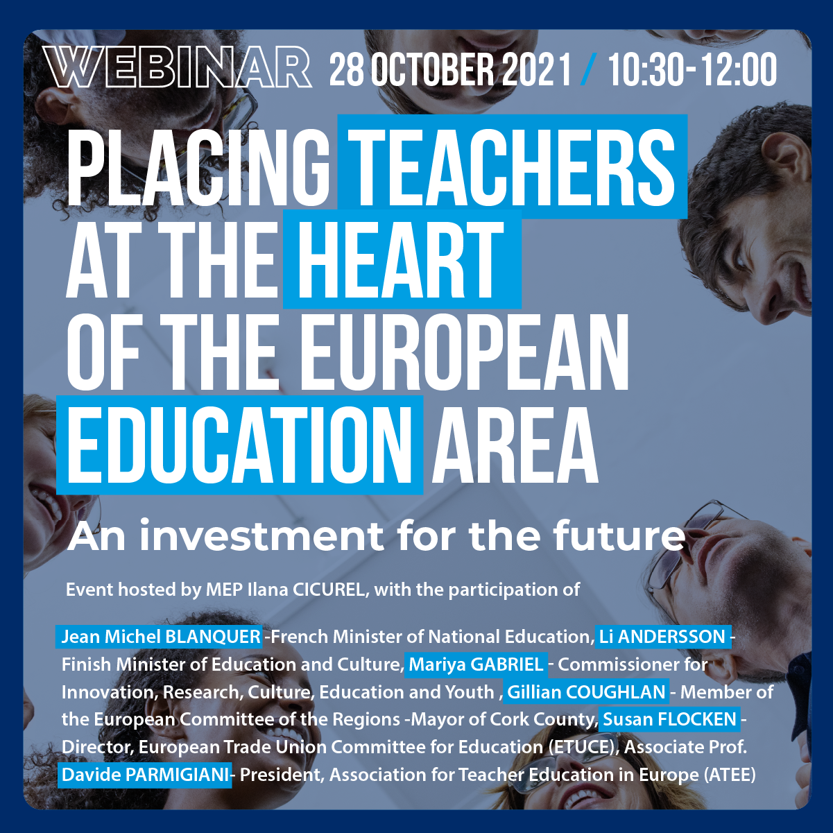 Other participants of the webinar on 28 October 2021 included Mariya Gabriel, European Commissioner for Innovation, research, Culture, Education and Youth, Jean Michel Blanquer, French Minister of National Education, Li Andersson, Finish Minister of Education and Culture, among others.