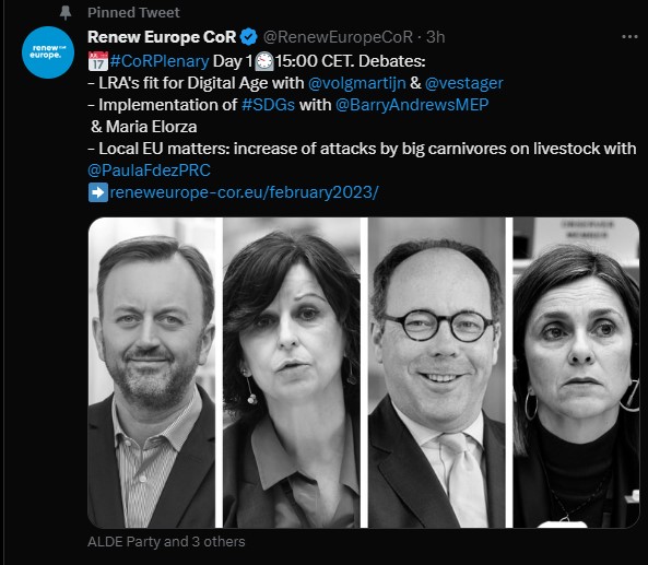 During the European Committee of the Regions February 2023 plenary our group will discuss the Digital Age with European Commissioner Margrethe Vestager, debate on the implementation of the Sustainable Development Goals with Barry Andrews MEP (Renew Europe), discuss the European Year of Skills 2023 with Dragos Pislaru MEP (Renew Europe) and more.