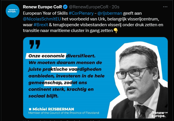 • Debate on the European Year of Skills 2023 with Dragos Pislaru MEP (Renew Europe) and Michiel Rijsberman, Regional Minister for the Province of Flevoland