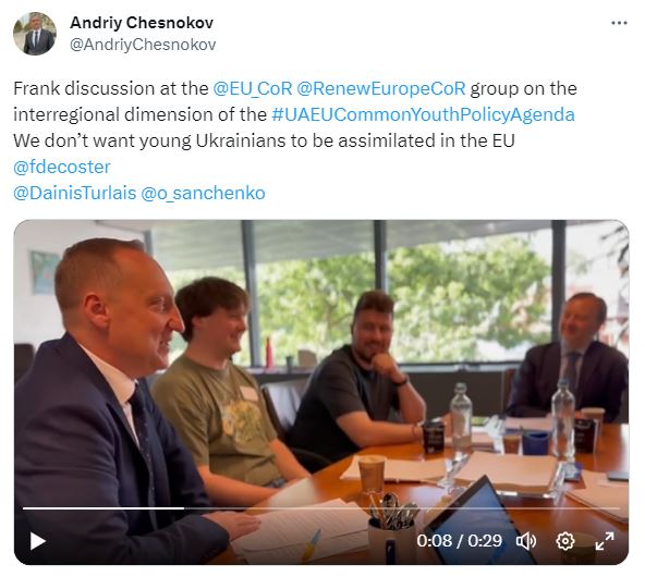 A Ukrainian delegation from Parliament, civil society, discussed supporting Ukraine with our President François Decoster, for instance in returning people who fled the war to their home, in their own cities and regions.